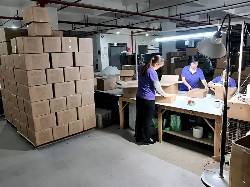 Om de verpakking en verzending te vergemakkelijken, hebben we ons eigen verpakkingscentrum in de buurt van ons hoofdkantoor in Dongguan opgericht. Dit centrum is gespecialiseerd in verpakkingsoplossingen voor fragiele items zoals glazen kandelaars en diffusers. We kunnen aangepaste dozen en voeringen maken, en we gebruiken milieuvriendelijke materialen om items zoals glazen diffusers en decoratief keramiek te beschermen, waardoor hun veiligheid tijdens het transport wordt gewaarborgd.