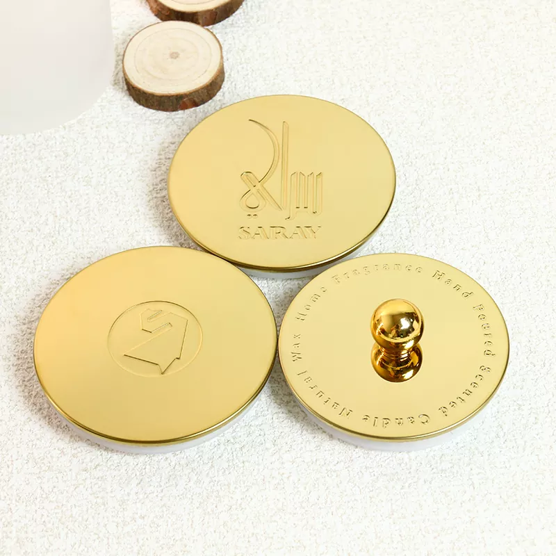 Aanpasbaar, het deksel kan worden gemaakt met intaglio en embossingtechnieken om een ​​verscheidenheid aan logo's, waaronder merksymbolen, te maken om volledig aan de individuele behoeften te voldoen. Compatibel met alle kaarsenpotten, voegt het een unieke decoratieve en onderscheidende aanraking toe. De duurzaamheid en recyclebaarheid van roestvrij staal dragen bij aan duurzaam gebruik. Of het nu wordt gebruikt voor de installatie van de thuisgeur of op maat gemaakte merkverpakkingen, de unieke metalen stijl verbetert de algehele kwaliteit van de kaarsenpot, waardoor het een premium accessoire is dat bruikbaarheid combineert met esthetiek, individualiteit en milieuvriendelijkheid.