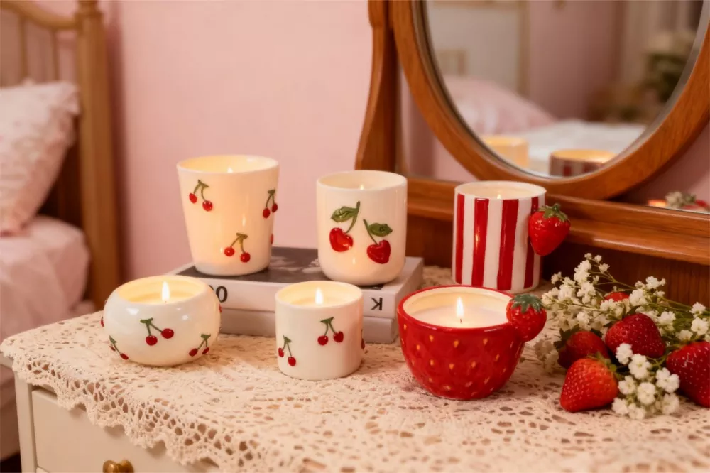 De Super Cute Ceramic Candle Jar-serie van BYF bestaat uit hoogwaardige handgemaakte keramische kaarsenpotten met een "superleuke" designstijl. De ontwerpen bevatten klassieke zoete elementen zoals rode kersen, driedimensionale strikken en aardbeien, met een glad glazuur en diverse vormen. Gemaakt van veilige en milieuvriendelijke materialen, heeft een uitstekende hittebestendigheid en past perfect bij standaard lonten en verschillende wasbasissen, waardoor het zowel een hoogwaardige kaarsenhouder is als een artistiek decoratief item dat uw interieur verfraait.